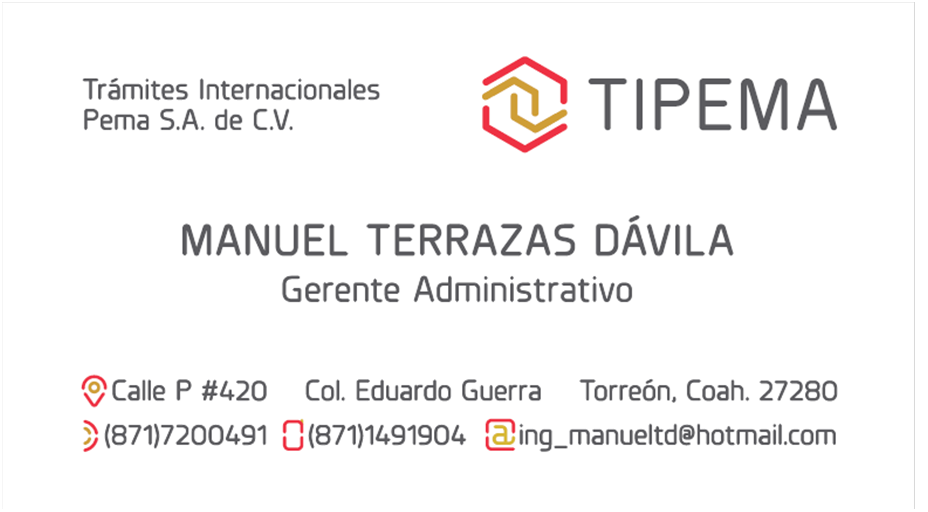 Estimado Cliente para cualquier duda respecto a los productos ofrecidos por TRAMITES INTERNACIONALES PEMA S.A. DE C.V. favor ve de comunicarse a los teléfonos de contacto mostrados en la parte derecha de esta página
